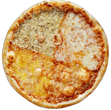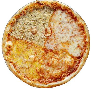 Trinti pom, mocarela, bri, Mėlynojo pelėsio ,Čederio, picos prieskoniai.