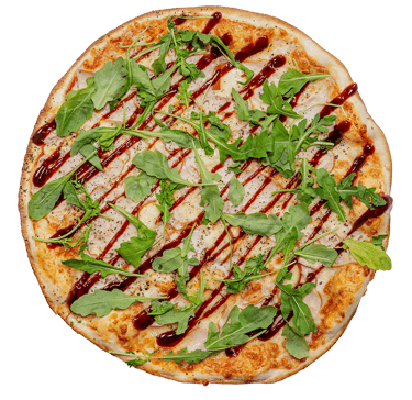 Trinti pom., sūris,vištiena,rūkytas sūris,rukola, bbq padažas, picos prieskoniai.